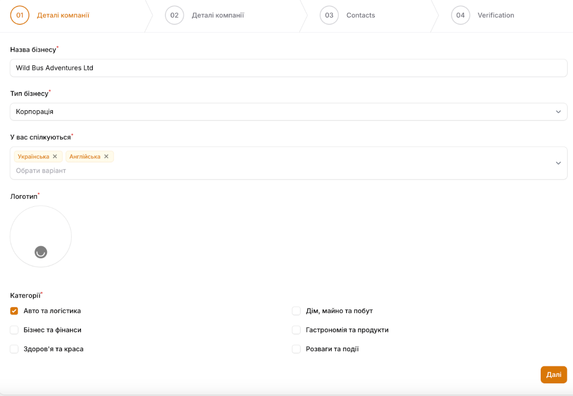 After filling in all the details, the company will be checked by the portal administrator. The typical verification period is up to 48 hours.