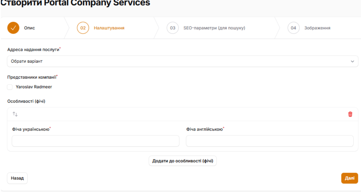 - In the appropriate field, enter the name of the service in Ukrainian and English.